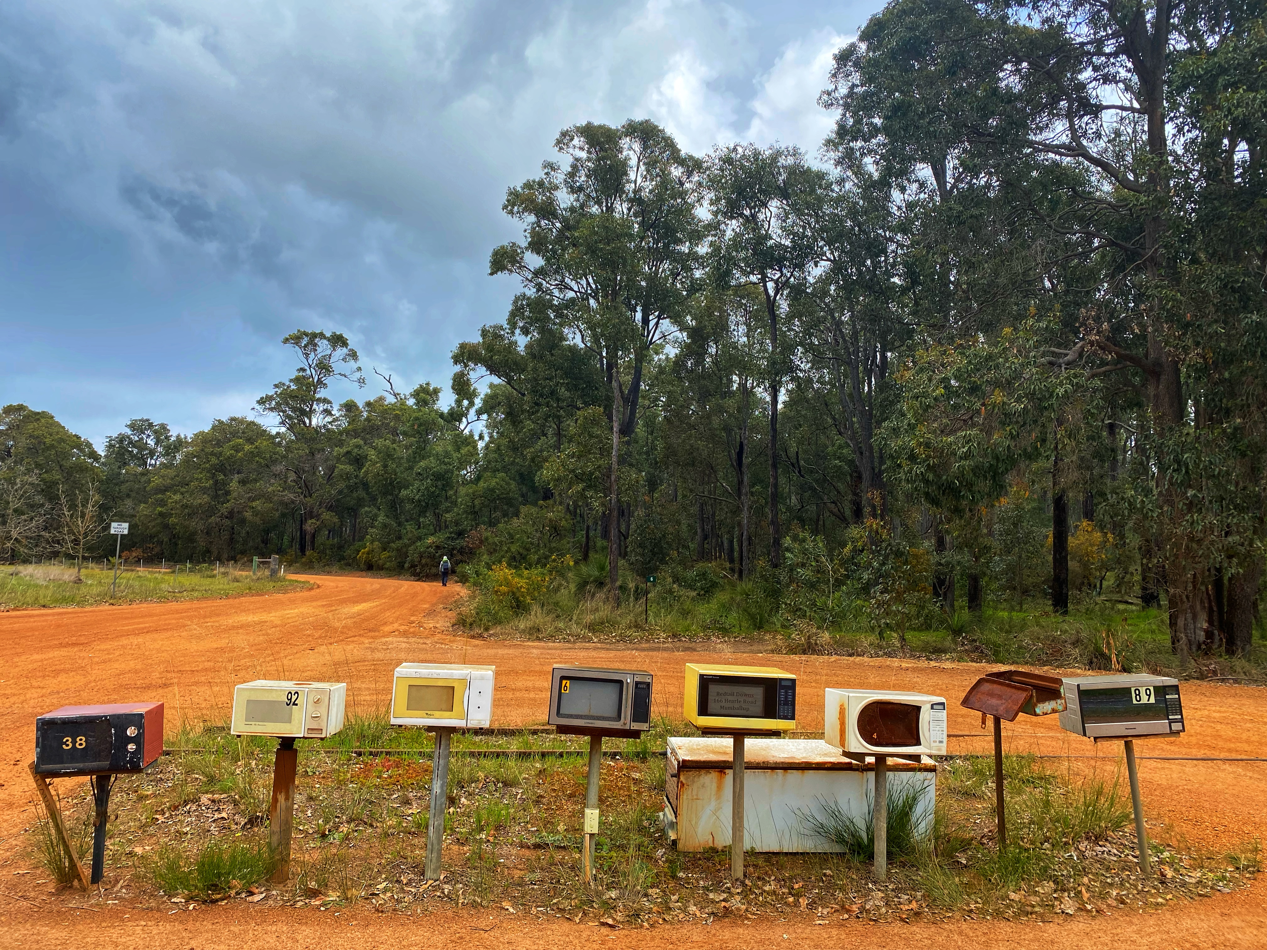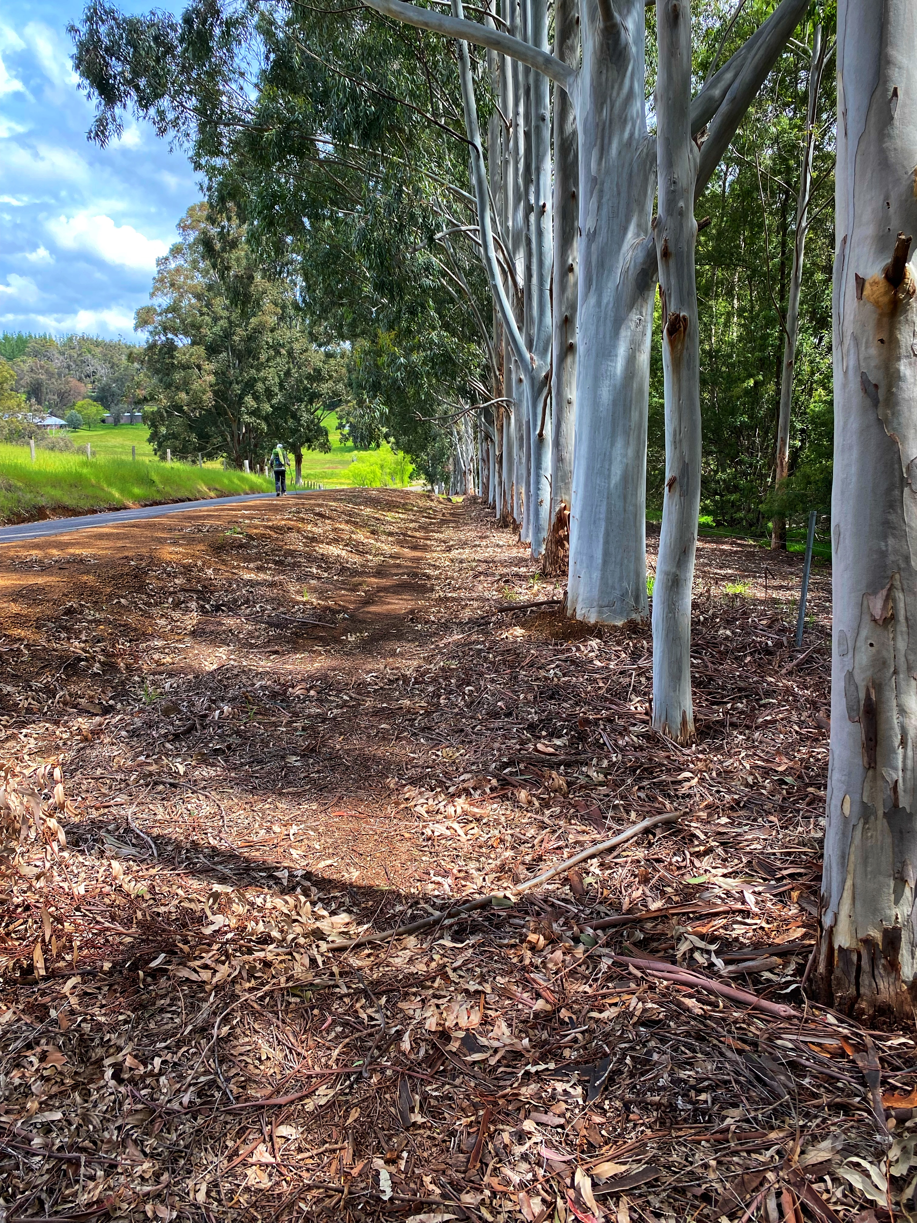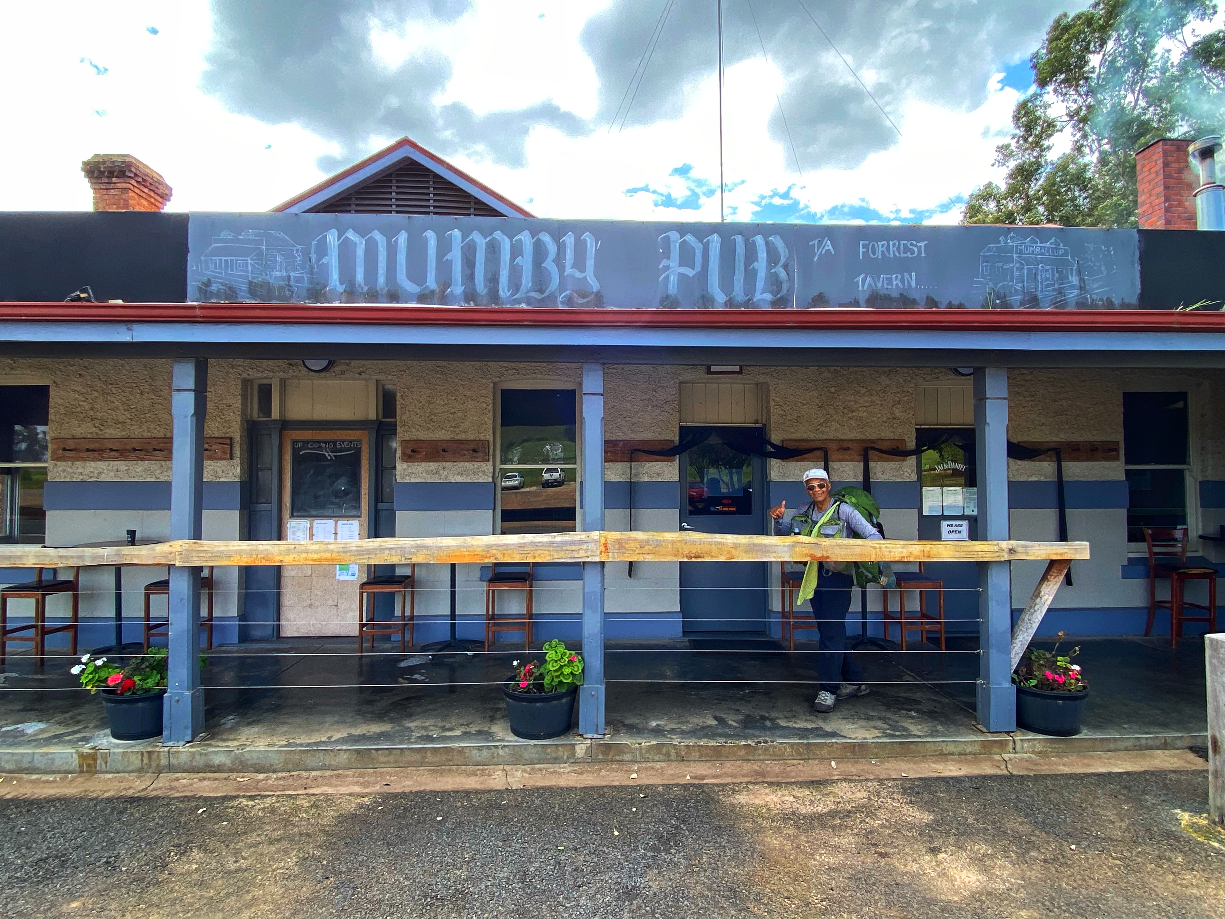 We started the 8km walk to Noggerup under rain that quickly eased and stopped. The long never ending incline road is still the same and feels every bit long after a pub stop. Ambles quickly fell behind as he struggled, stopping often for a breather. I caught up and leap frogged pass Olli & Viv and into the forest – yahhh! I had made it. It didn’t seem so bad the second time. Ambles had got second wind and suddenly was right behind me. We met this tall young lanky guy moving in the other direction. He goes on to warn us about these ‘4 young guys’ staying at Noggerup campsite. They are getting pissed, eating honey out of a jar, doing all this weird stuff and they are heading to the Mumby Pub carrying an axe to have some drinks before returning to camp. He gleefully said he was happy he wasn’t staying there. He told everyone this same story. He himself was heading to Yabberup campsite at 3.30 in the afternoon! He asked if many people were there last night. I said yes full house. He goes well he might just continue into Collie then! I reckon he was only going to the Mumby pub myself. 10 minutes later, the 4 young guys pass us, not really saying anything, not looking like your typical hikers. I think someone did notice they were carrying an axe.