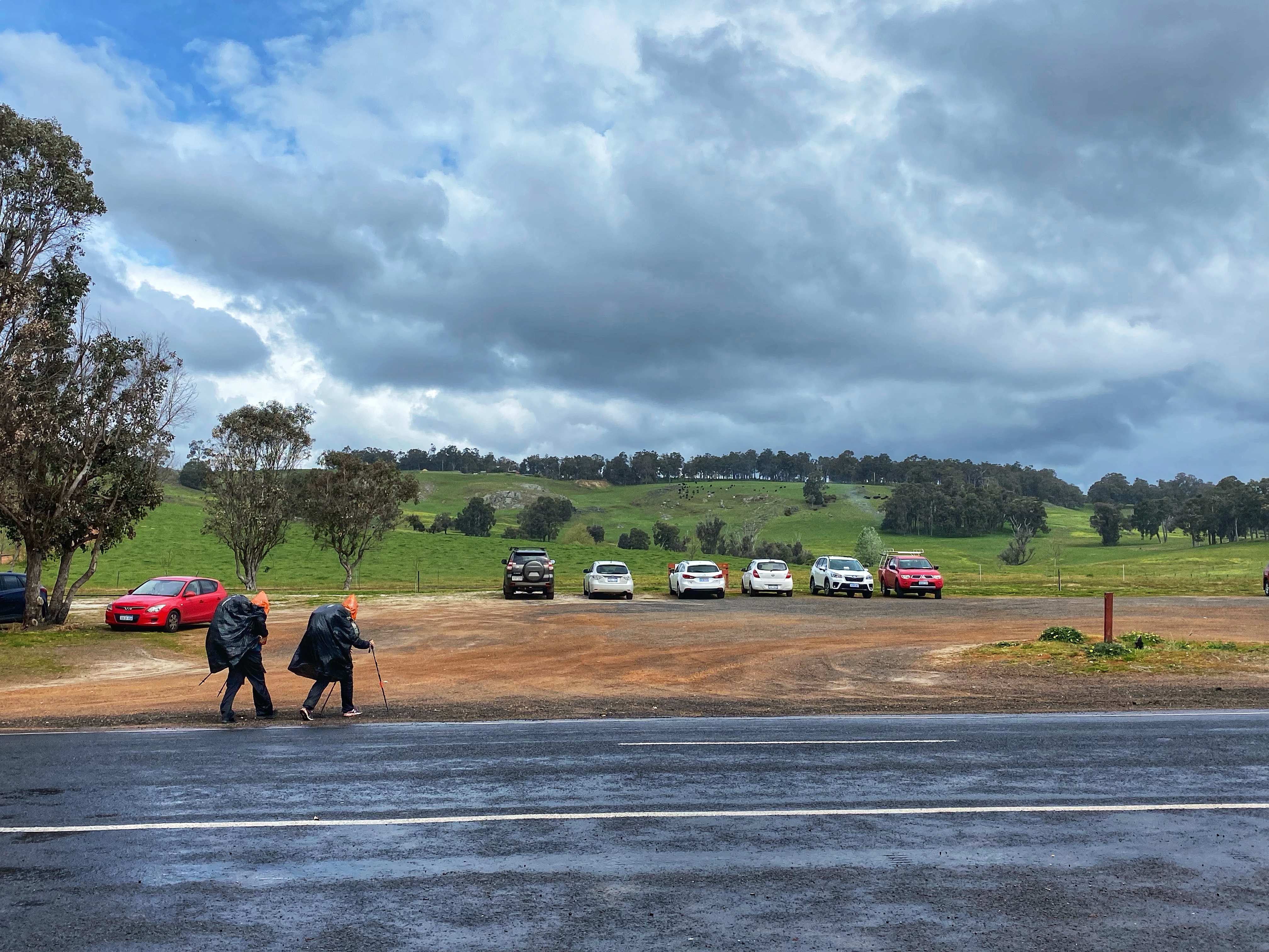 My focus was to reach Lowden-Grimwade road where we would have 10 kilometres to go. It was raining again as I reached there and waited for ages for Ambles to catch up. Such was the day, Ambles was struggling and slow, I was starting to slow down, over the walk and my feet were aching, cursing me. But I willed myself to keep going, and willed Ambles to keep going, he could do it! I fished out a cherry-ripe bar for Ambles, his favourite chocolate. He took it face lit up and gave him a boost which unfortunately didn’t last long enough.