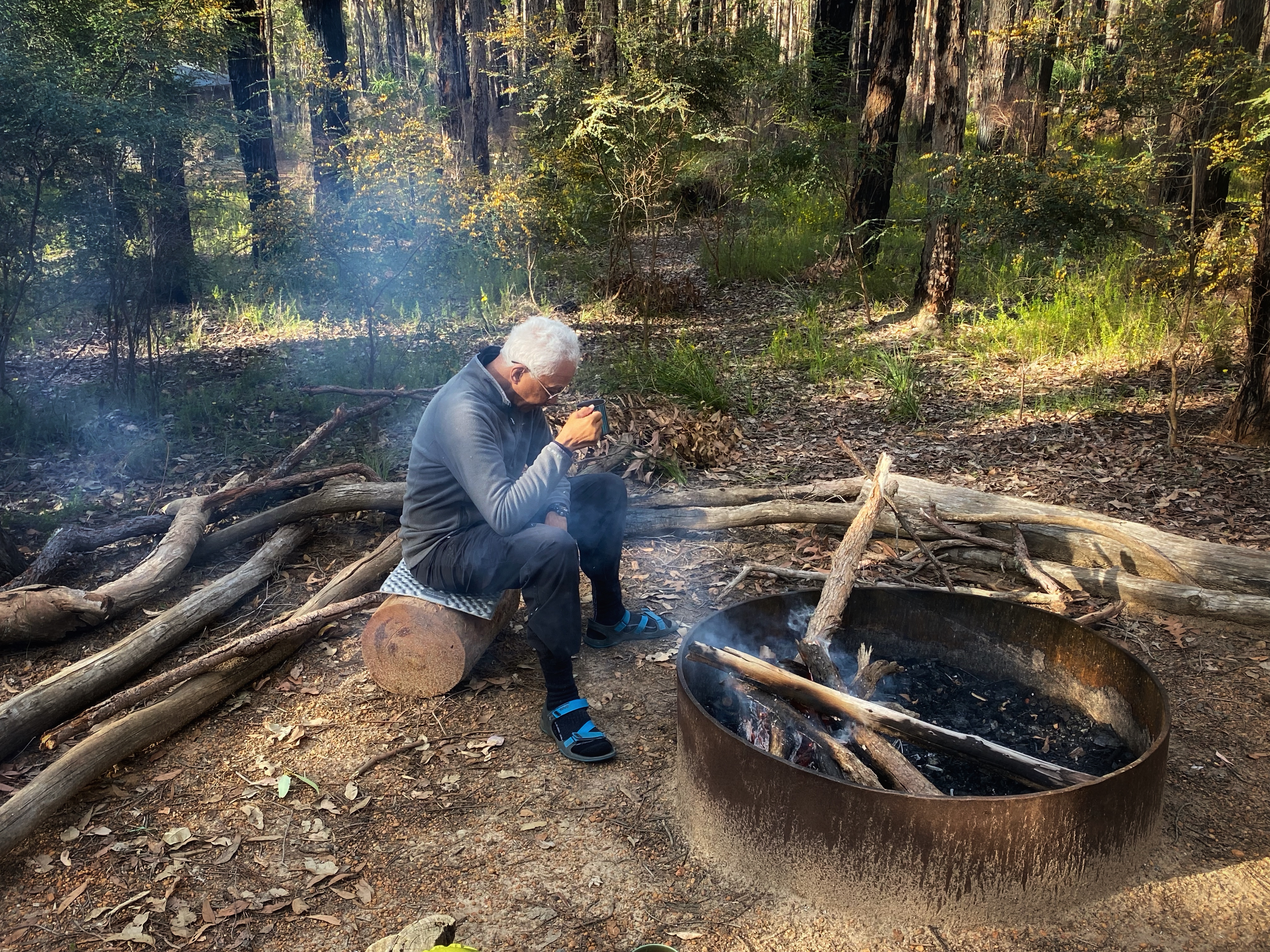 We have the afternoon to relax and unwind. Our bodies are sore, aching and unhappy with us. Ambles gets the campfire going and we end up having the place to ourselves not seeing another hiker at all. But trail mortorbike riders we do hear nearby on other dirt roads as they rip noisily along. We are very cosy in our tent & sleep very well that night.