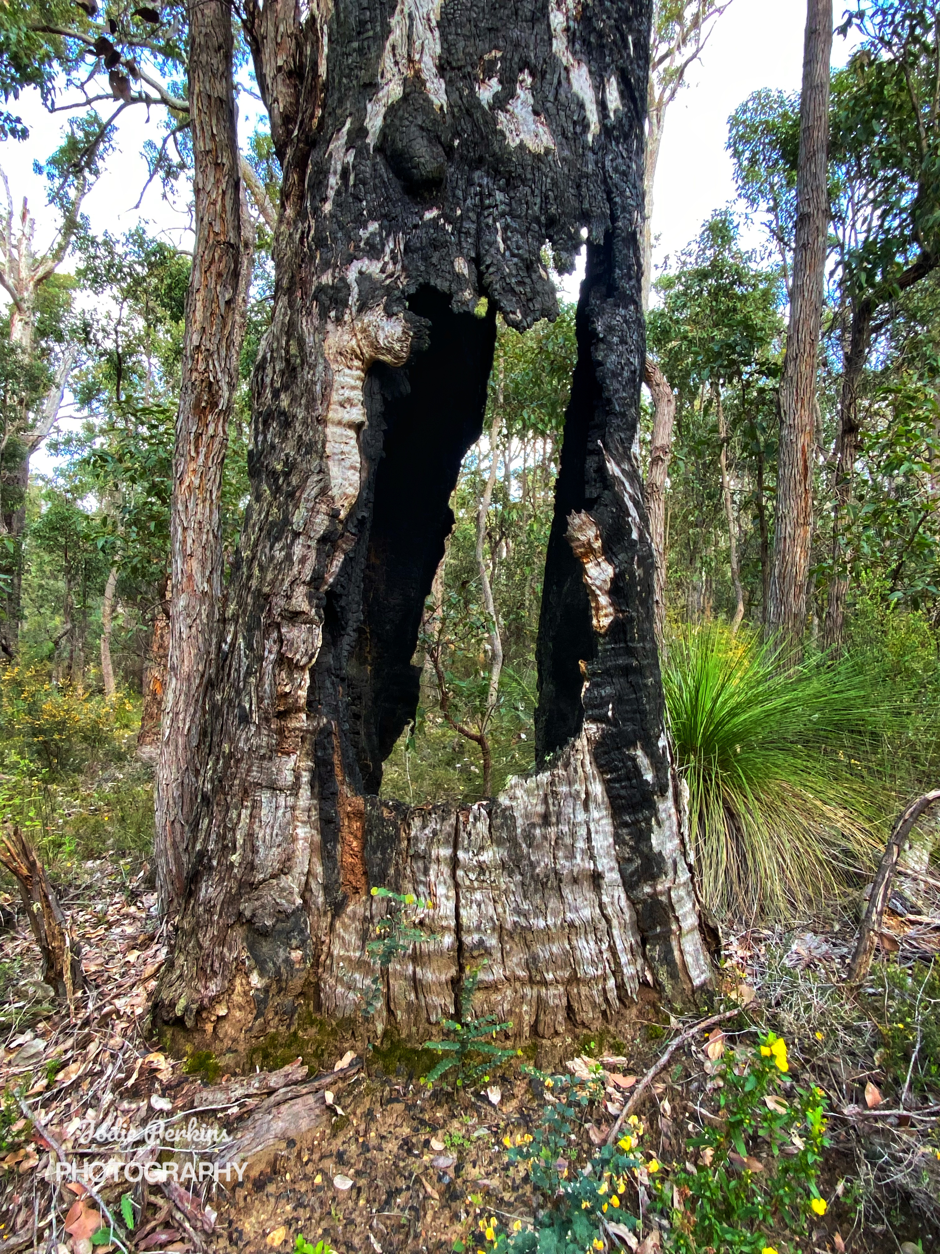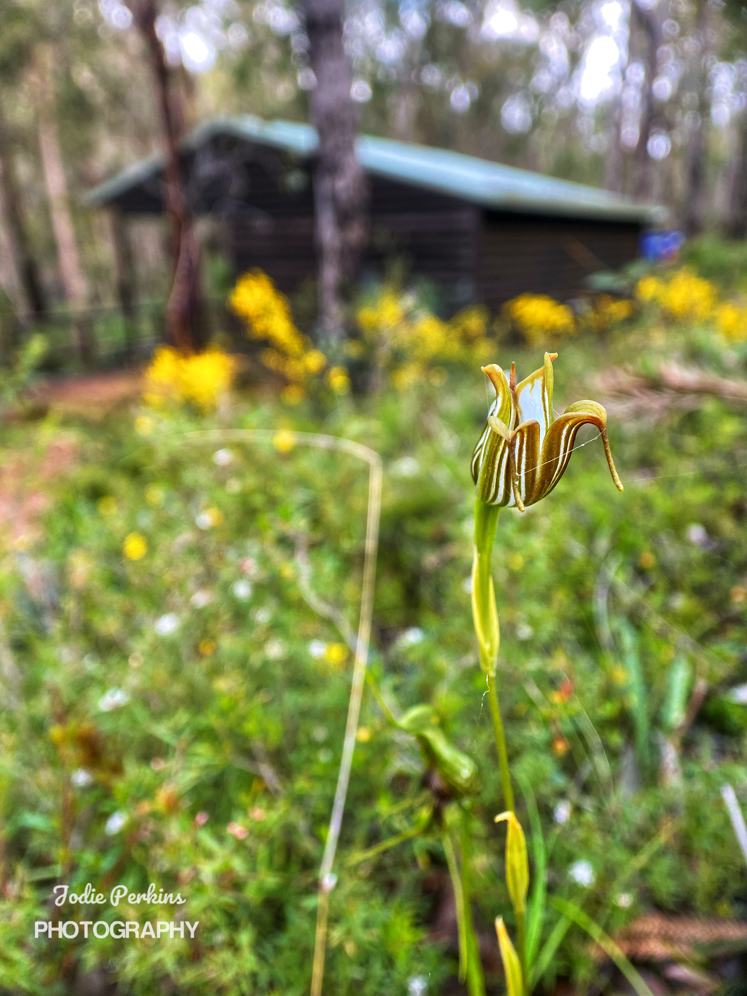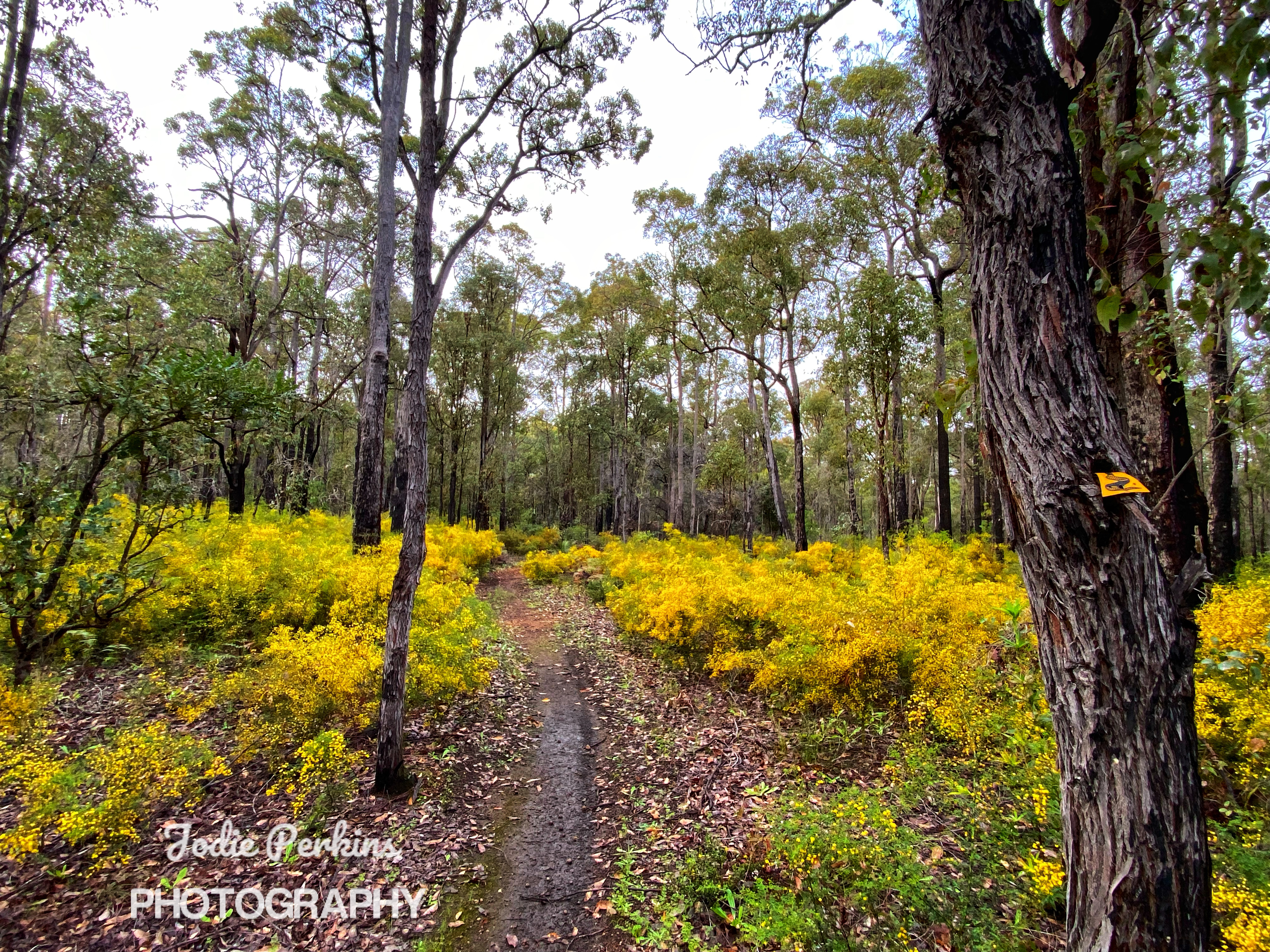 Motorcycle trail riders should not be using the Bibbulmun track, but here they were, ripping it up, a whole family of them speeding pass us, their noisy machines upsetting the peace and tranquillity of the forest. And today it rained on and off, on and off in such an annoying way. No sooner I put my umbrella away, it starts to rain again! I was thinking it will be too hard to stop for lunch on the track. Determined to push all the way to Grimwade but it was meaning a late lunch. I noticed new orchid leaves popping up and wondered what they will be. There wasn’t much besides a sea of yellow wildflowers in places.