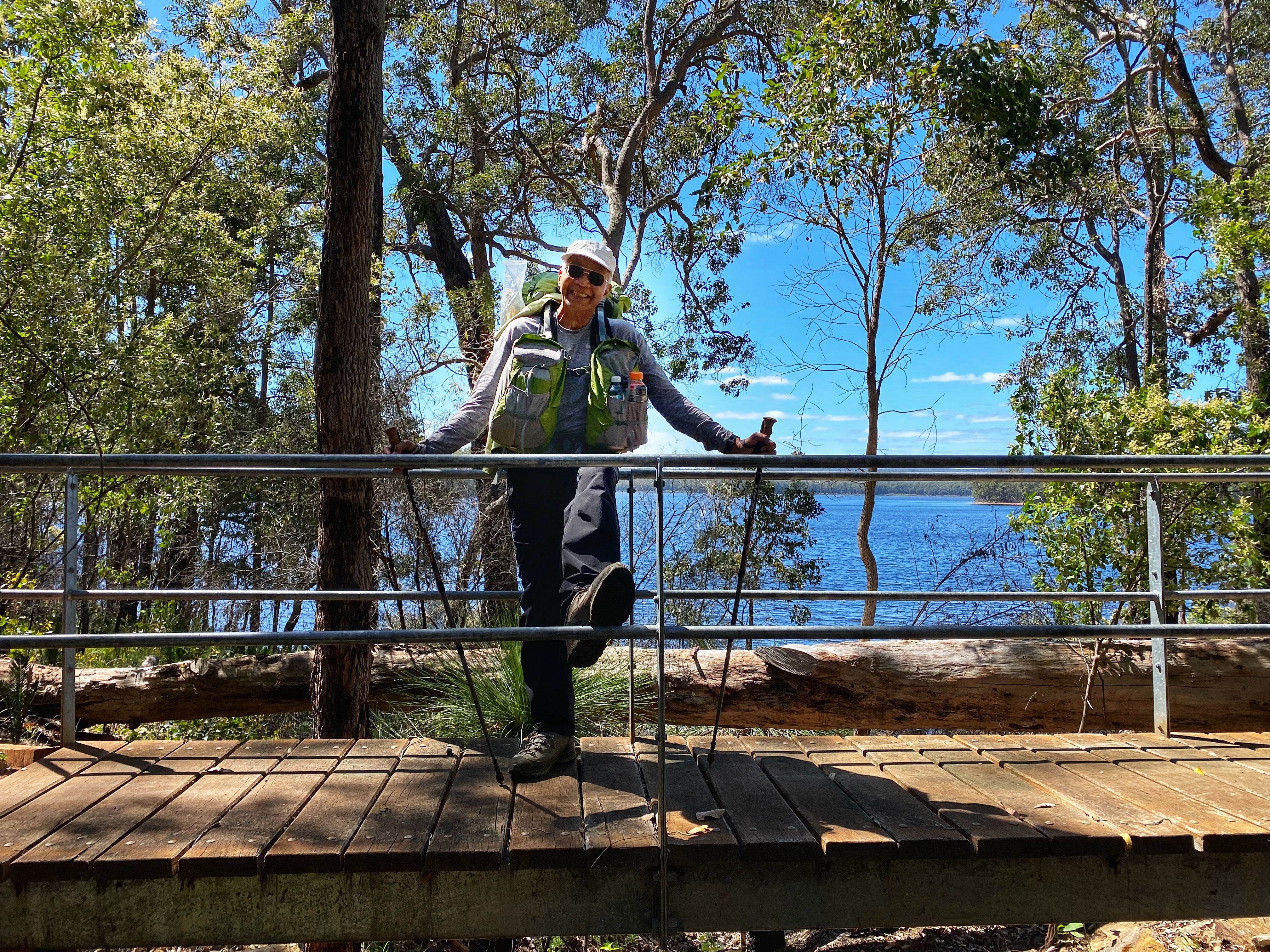 Ambles said to me, “Did you drop something 1am in the morning on the wooden floor because there was a loud noise that woke me up”. No dear I did not. Katy from above must have knocked something accidentally. The rain had ended and it was going to be a good day. Katy well rested, had packed up and first to leave at 5.30am. Perry was next out and we knew we wouldn’t see him again. Or was it?! 7 days later what were the chances that we would go to the suspension bridge over Deep River along the Bibbulmun Track as Ambles wanted to check out a fishing spot, just as Perry and his latest walking companion would cross over the bridge. He still looked fresh as a daisy not looking wrecked at all and in 7 days had galloped his way from Balingup to almost Walpole! He recognised us straight away and was shocked. He probably thinks we are stalking him! He clearly didn’t want to stop but did momentarily to talk to us. He said he will finish in Albany in 5 days time. Not only his fitness prowess but also the marathon runners currently running Northcliffe to Albany via the Bibbulmun Track left me feeling rather exhausted and very unfit!