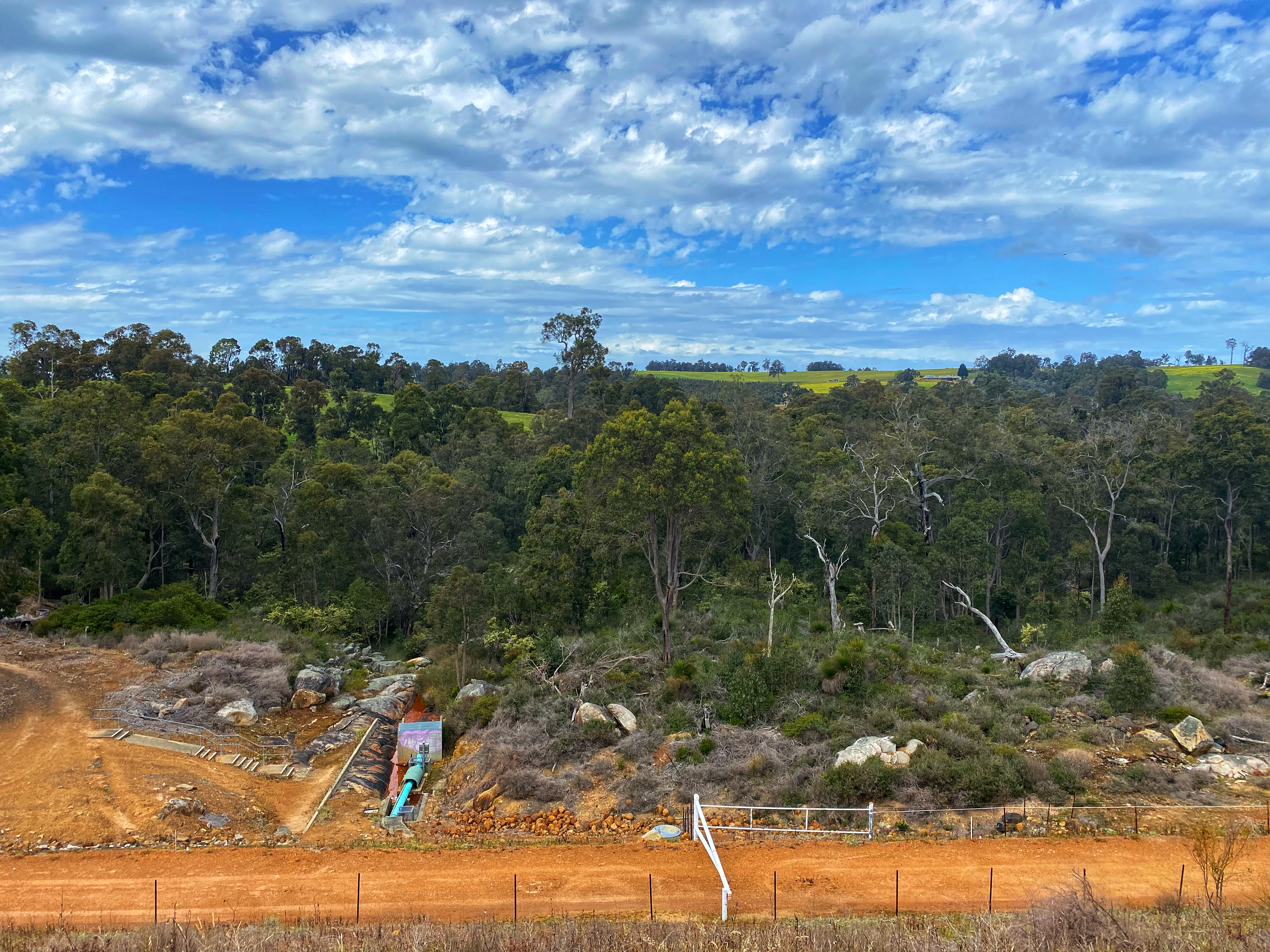 We had a 20 kilometre walk from Yabberup to Noggerup Campsite following our favourite waugal marker. I keenly observed Orchids again and at days end had counted an impressive 15 different orchid species along that 20km patch alone. There was also some rather lovely patches of wildflowers. This section would be one of the best, with forests, a dam, a pub, farming countryside, old railway tracks and some more forest. Not to mention Noggerup campsite is in a rather beautiful spot even if the toilet is up the hill above the campsite! We started well even though Ambles was lagging behind only catching up when I was taking photos. Glen Mervyn Dam was quite noticeable fuller with the water going right up to the banks edge compared to September 2019. It was also packed with many campers staying for the long weekend. Simone and Ben had already overtaken us but we caught up to Olli and Viv at the Dam wall. We leapfrogged each other the rest of the way to the Mumby pub for lunch arriving just after 12pm.