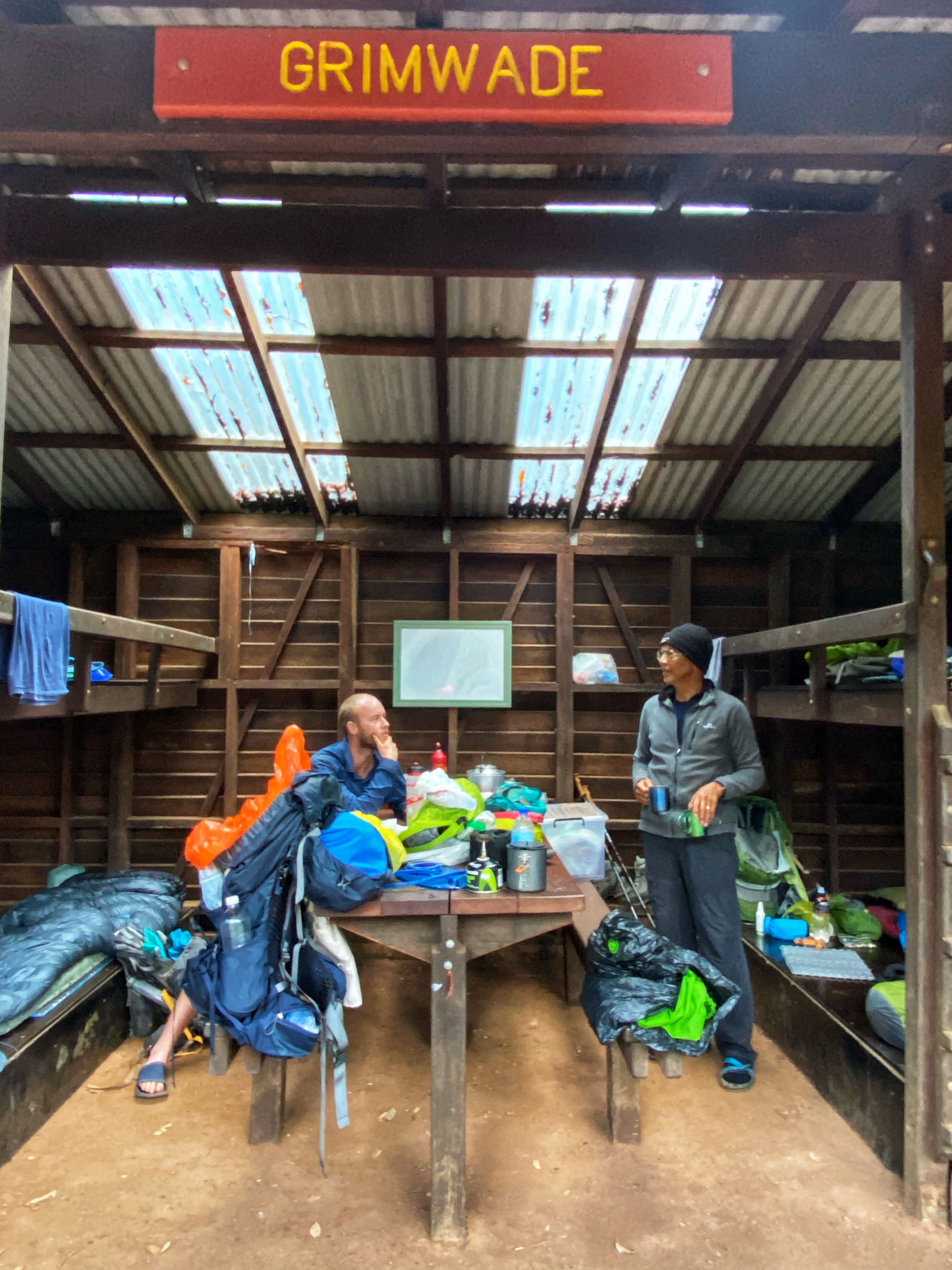 Ambles had decided to put our tent up inside the shelter in the middle lower section. We were told a storm was possibly coming in overnight. I was thinking we would have to move as more people came in as the afternoon wore on. There must have been 20 people there that night. Most were section walkers like us and one was End to Ending south to north. We didn’t speak much but she was in her tent right next to us and wasn’t impressed with our sleeping mattress. I hadn’t realised how noisy it actually is, especially on a wooden floor in a crowded shelter. I did not sleep well, trying not to turn too much and not go to the toilet until the morning. I felt for the others that put their tents up outside but luckily it did not rain as forecasted. Oh….. and the Melbourne Demons won the grand final footy match.