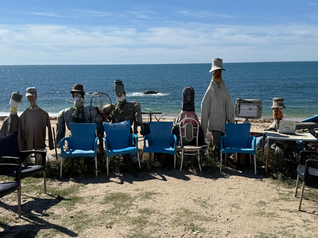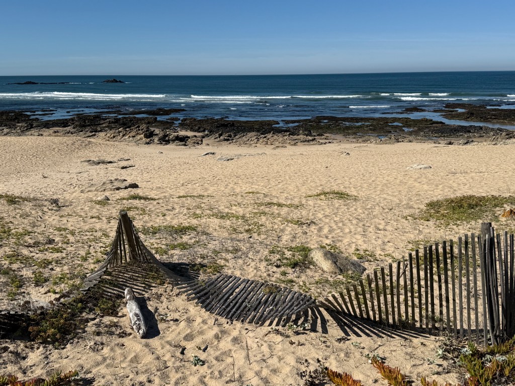 The walking is fairly flat pavement and boardwalks that follows alongside the ocean. The first part of the day is excitement and adventure as we enjoy the views. Soon enough a toilet is needed but there are no toilets! All the public toilets are locked and the smell that emanates from some are truly gag material! We think then to stop at a cafe and order a drink, use a toilet, but it is Tuesday and some of these restaurants are open everyday….. but Tuesday! Getting desperate but by midday we do find one open and decide in order; toilet, seat, drinks, lunch & toilet! The food is a peregrine meal. Simple and delicious two small buns with meat and cheese and a side of fries. Mr D and I have a Panache – beer with lemonade. Super refreshing on this warm day. Our fellow Camino buddy, Karen would like a blanco vino. Make it two! No Karen! One is enough, we must walk on having done 10kms we were over half way.