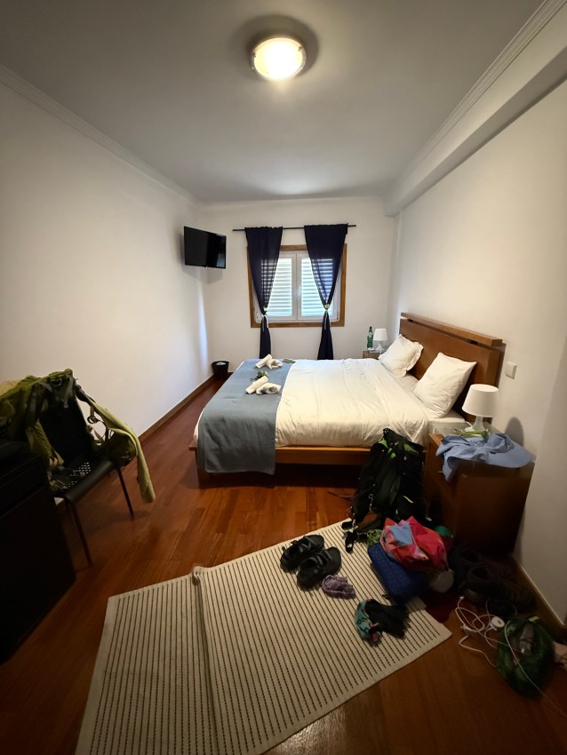 There were others in the kitchen cooking when we got back. So we cleaned our teeth and retreated to our own bedrooms for the evening. Hell, don’t know how tomorrow will go. It’s going to be a long day and the body will be sore! I’m not looking forward to putting that backpack on!