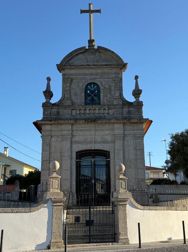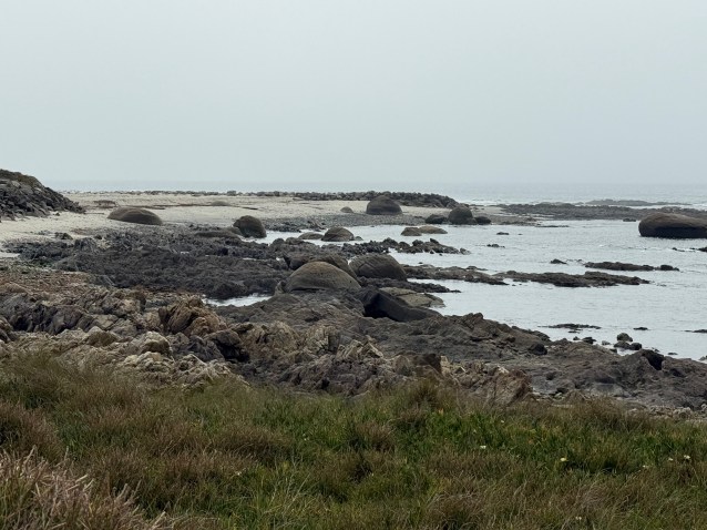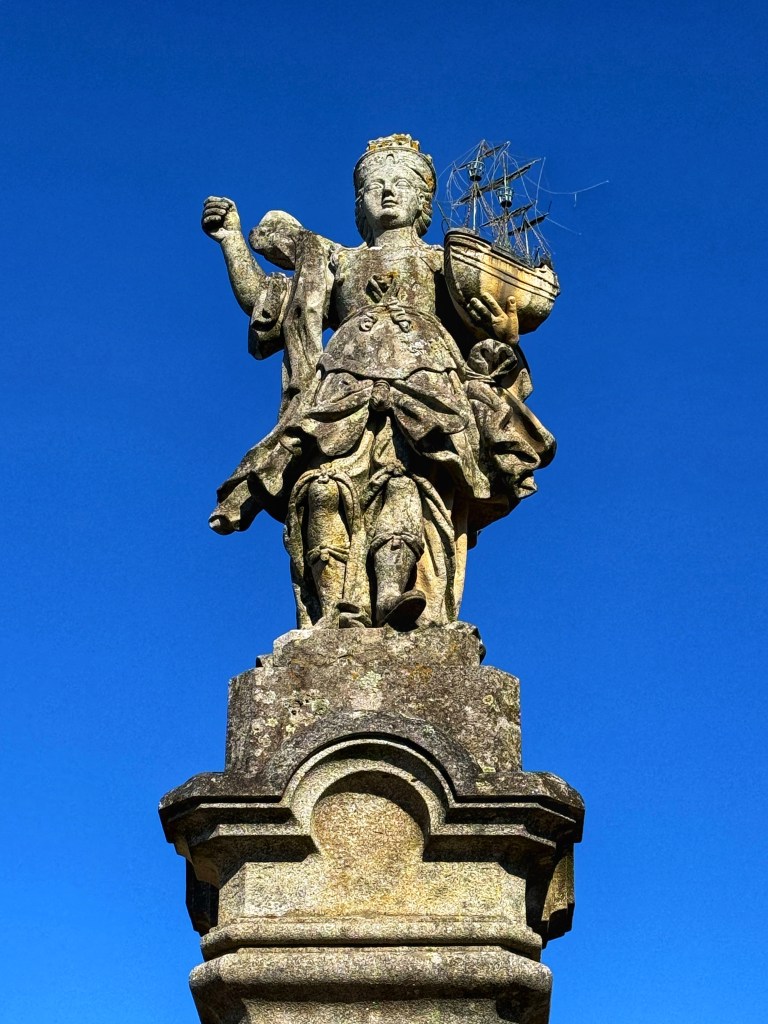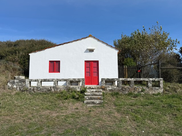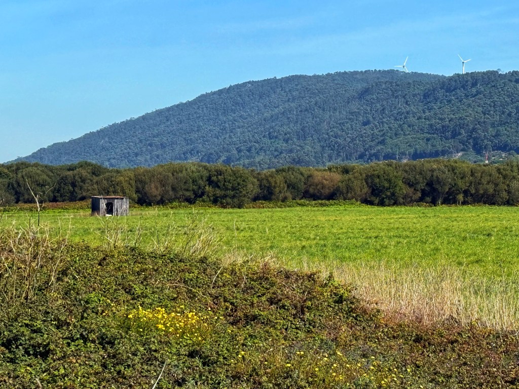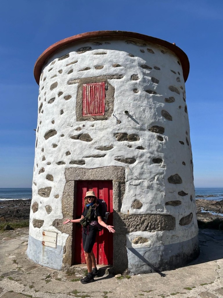 Outside had a cool breeze when we eventually left the restaurant. It looked misted over but probably just sea salt spray. It didn’t last long and the sun came out again. We had to navigate some uphill cobblestone paths after lunch and then the Camino track disappeared as no markers, I ended up following these orange ribbons on trees that I believed had been put there for the pilgrims. It wasn’t even 30 minutes since leaving and Karen was following me, Mr D was following another pathway and had 5 pilgrims following him as he bush bashed back to the route. Karen had an urgent need for number two thinking it was the chocolate mousse. We were at a middle of nowhere pathway intersection with bushes and trees. I said to her she could just go here as there wasn’t anyone around. So she popped around the side and squatted down with her pants down to do her thing and next thing 3 cars drove pass. They hooted at her as all she could do was give a thumbs up.
