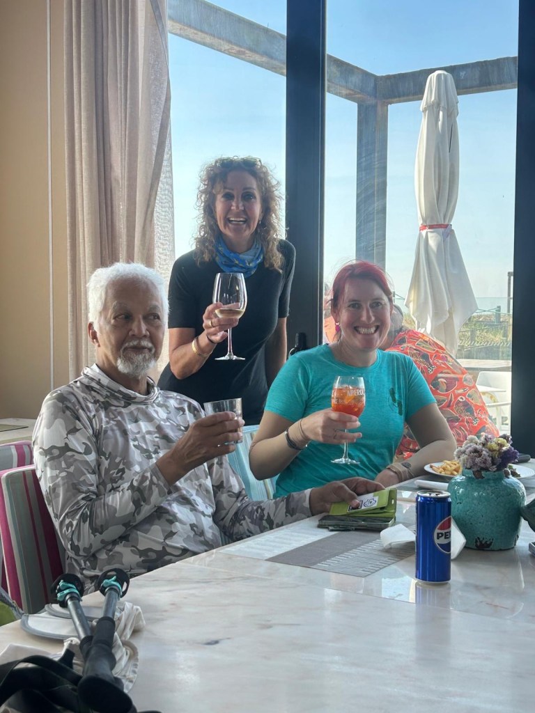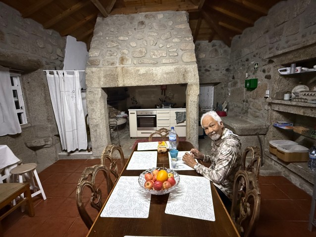 Still had to throw off socks and shoes straight away, wet my buff and cool my rashes down, elevating my feet as did Karen. Mr D moaned about us delaying his drinking time as he hadn’t had any alcohol all day. Eventually we went to look for dinner. I was the one with the hikers hobble this time. We enjoyed traditional Portuguese Francesinha sandwiches for our last night in Portugal and boy were they huge and incredibly delicious as well as incredibly unhealthy. Artery clogging food. Lots more booze too helped. Lovely evening. Shame again our day is too long and we have no time to enjoy exploring the village where we are at. My vasculitis actually looked better after lunch but now hot and red again. Karen’s balls are hurting again. Mr D, well he is just bloody fine! His mild cold is improving. His minor foot ailment seems manageable enough. He is just winging it and it is working well in his favour. So tomorrow we go into Espana! 😊