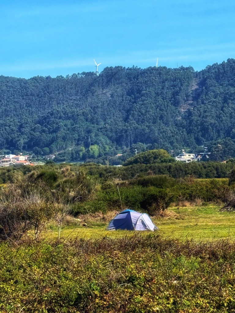 Vila Praia De Ancora, a rather pretty seaside village loomed into view as we navigated the wooden boardwalks into town. Quite a number of missing wooden planks. You had to watch your feet always as it was easy for a foot to fall into a hole in the boardwalk. Some planks are loose at one end so spring upwards as you step onto it. All in all, maintenance is desperately required. My rash was starting to flare up after 28kms today. We always have trouble finding the accommodation. My initial map was correct but we followed Karen another 200 meters up the street and back again before the man let us in at the right place. A swanky upstairs apartment with a lift! No stairs required. He was very friendly, said he would send us information on catching a boat tomorrow into Spain but didn’t. We have a lovely apartment to ourselves to enjoy for all of 5 minutes again as it was after 5.30pm when we got in.