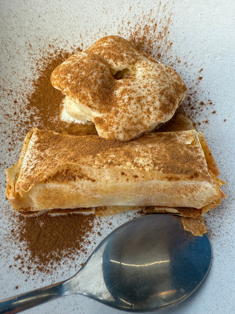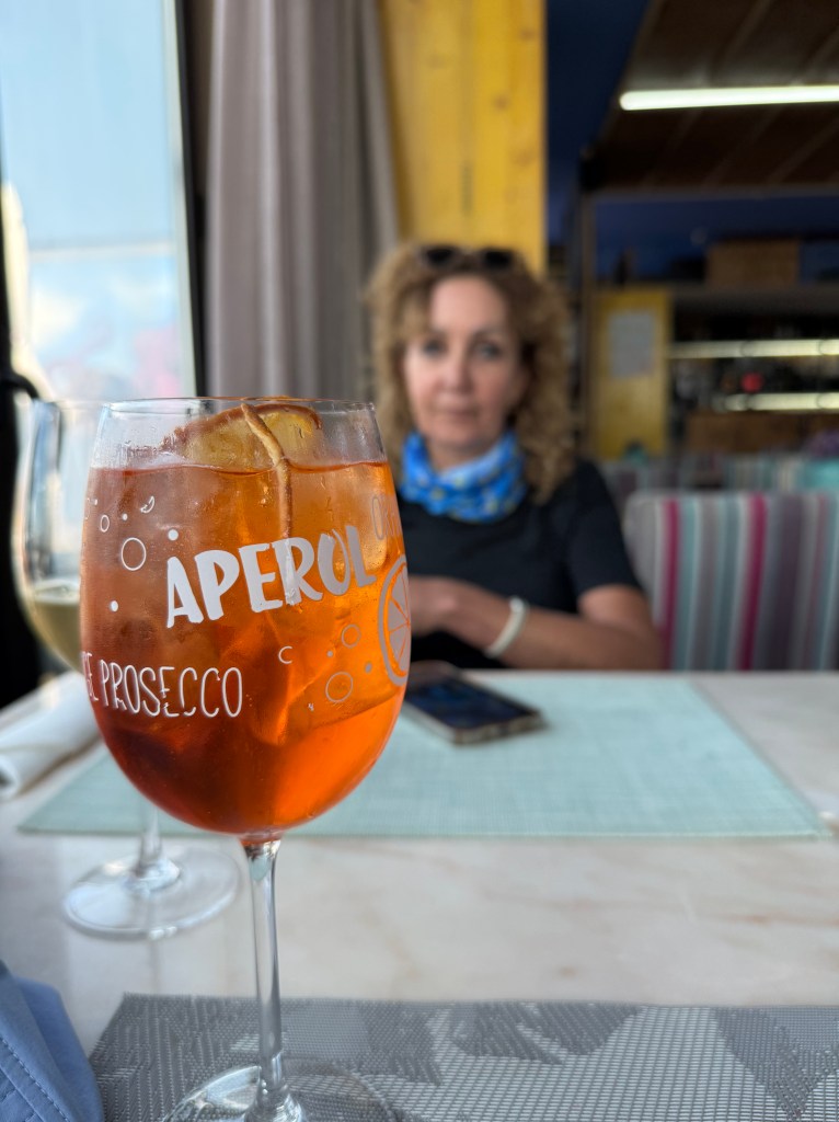 There’s nothing on this section. One restaurant that we thankfully stopped at and had a long 2 hour lunch. The food was great. The drinks only better. I tried their crème brûlée dessert that actually is completely different but very nice! Karen that was walking with a pronounced hikers hobble was talked into a chocolate mousse. All good! Two pilgrims that we met at the albergue yesterday caught up to us today. I couldn’t know their names only they are from Toronto in Canada. A lovely couple. We shared some laughs. Mr D still on a no alcohol binge had two Pepsi’s don’t know why! We had cocktail and wine. Karen and I were feeling very happy again! I almost left my camera behind.