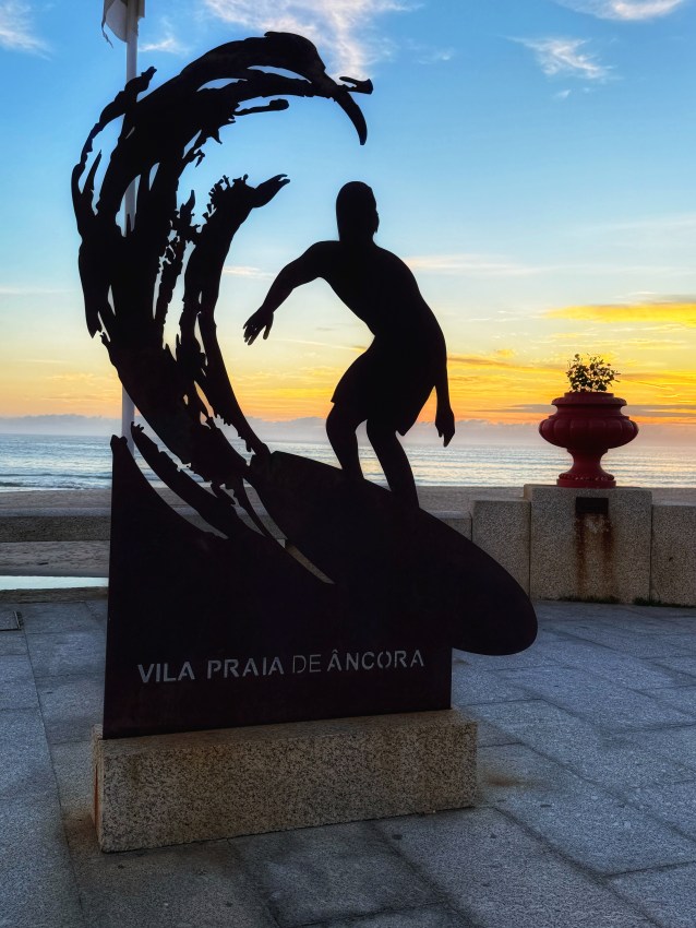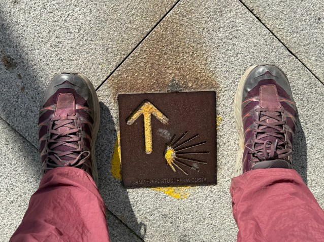 We got to Viana do Castelo town after a short rocky down hill slope that had my right knee ringing out in dismay. I temporarily got side tracked by following an arrow to an albergue. Otherwise we re-grouped and sat at a cafe for coffee and Portuguese egg tart. From there we followed the Sendal Littoral route that hugs the coastline. This route lacks markers. There were no Camino signs to follow so pilgrims followed pilgrims blindly. I followed the Camino Ninja app but even then the route was different on there to actually out on the track! It had warm up too soon so the first 6kms along pavement was hot. I would re-wet the buff and replace it on my leg. There were water refill stations on this part for the first 2 kms anyway.